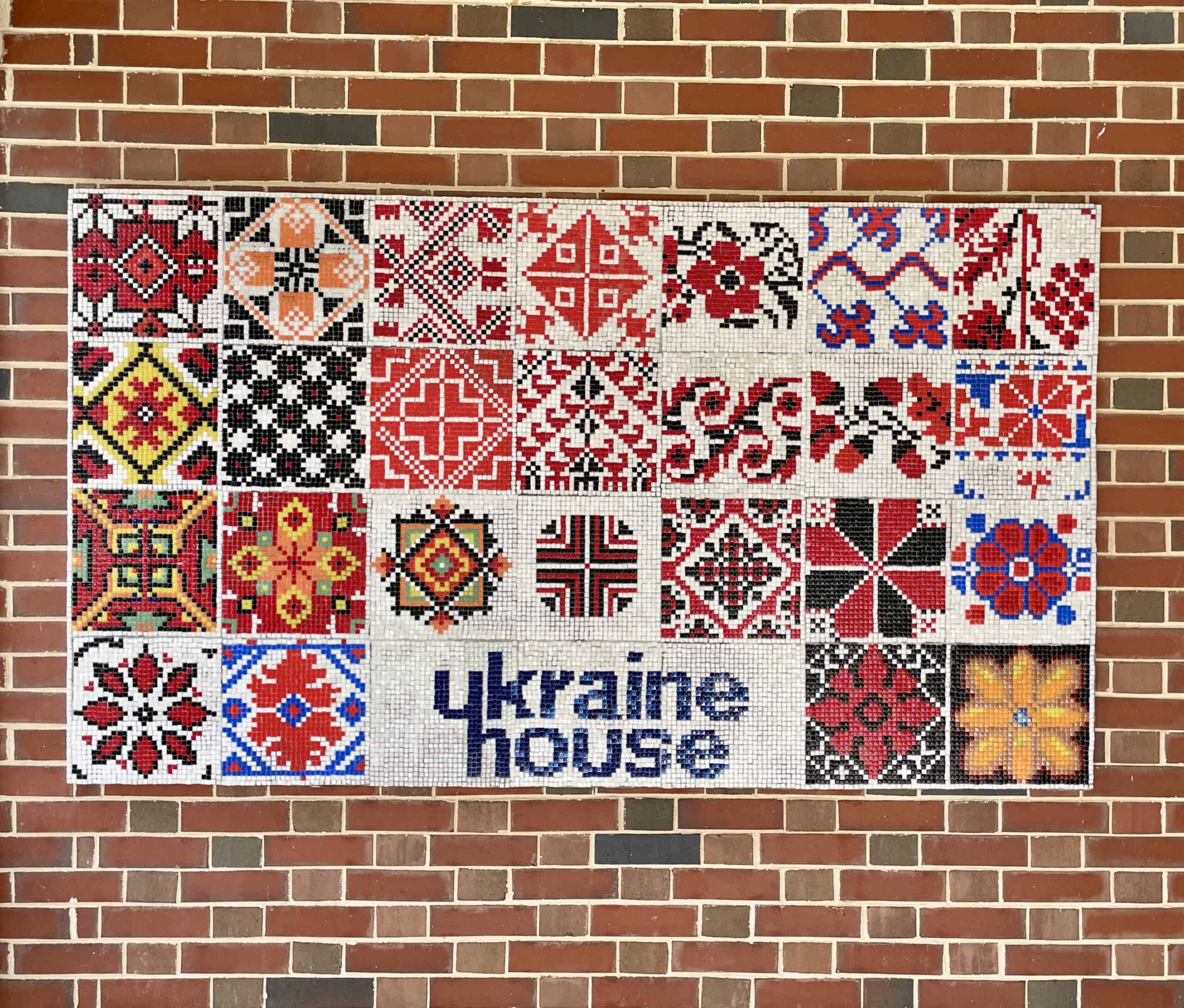 From March to May 2025, I worked with visitors to Ukraine House in Washington, D.C. to create a wall mosaic. The design was inspired by the diverse embroidery motifs that were painted by the approximately 30 participants and then laid with glass mosaic tiles.